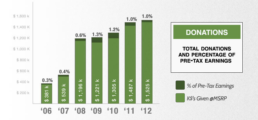 Our target for giving each year is to be best-in-class, which is to meet or exceed 1 percent of our pre-tax earnings. We track both our total donations as well as the percentage of the previous year's pre-tax net profits and we seek to improve upon our total giving year-over-year.