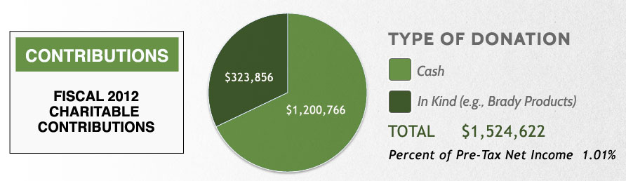 The majority of Brady's charitable giving is made through the Brady Corporation Foundation which was established in 2005. The Foundation works to make significant long-term grants, as well as one-time cash gifts and other gifts-in-kind to non-profit organizations.