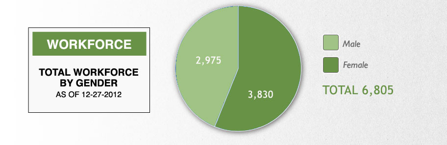Charts do not include PDC employees which were acquired on 12/28/2013. Including PDC, Brady's workforce totals over 8,000.