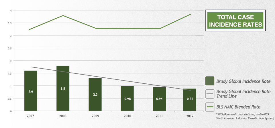 Brady has been tracking and reviewing safety performance on a quarterly basis since 1998.
